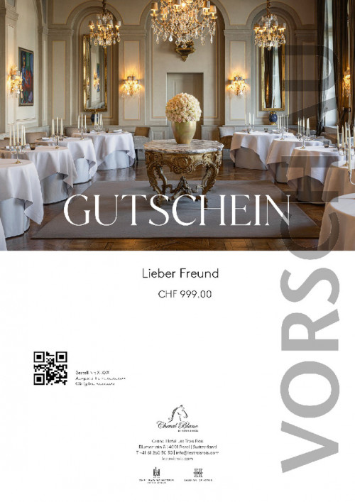 Verschenken Sie ein unvergessliches Erlebnis für alle Sinne im Cheval Blanc by Peter Knogl (3 Sterne im Guide Michelin, 19 GaultMillau-Punkte). Chef de Cuisine Peter Knogl und sein Team verzaubern ihre Gäste mit ihrer Kochkunst, die durch grossartige geschmackliche Raffinesse und Kreativität überzeugt.
