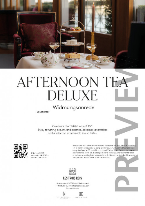 We serve tempting delicacies, delicious sandwiches, biscuits, pastries and a selection of aromatic tea varieties from the "L’art du thé" tea shop in Lucerne in our lobby every day from 14.00 to 16.00 and from 16.30 to 18.30.
