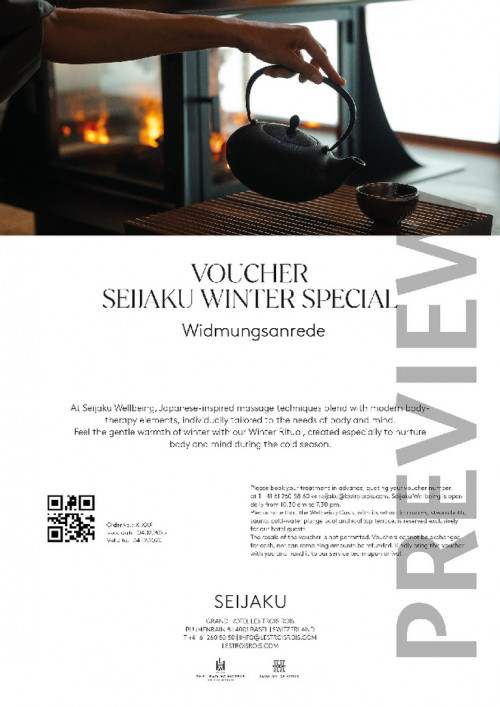 Includes: Winter tea during the foot bath as well as the signature Seijaku beverage with a complementary delicacy by the fireplace