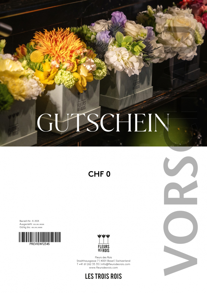 Verschenken Sie einen Gutschein für eines unserer Signature Bouquets, eine Boîte à Fleurs oder ein Bouquet ganz nach Ihren Wünschen. Neben den majestätischen Klassikern warten auch unsere saisonalen Kreationen darauf, entdeckt zu werden. Mit Feinsinn und passionierter Handwerkskunst fertigen wir alle unsere Blumenbouquets. Das Fleurs des Rois führt auch ein kleines, feines Sortiment an auserlesenen Accessoires. Gerne liefern wir auch an Ihre Wunschadresse.