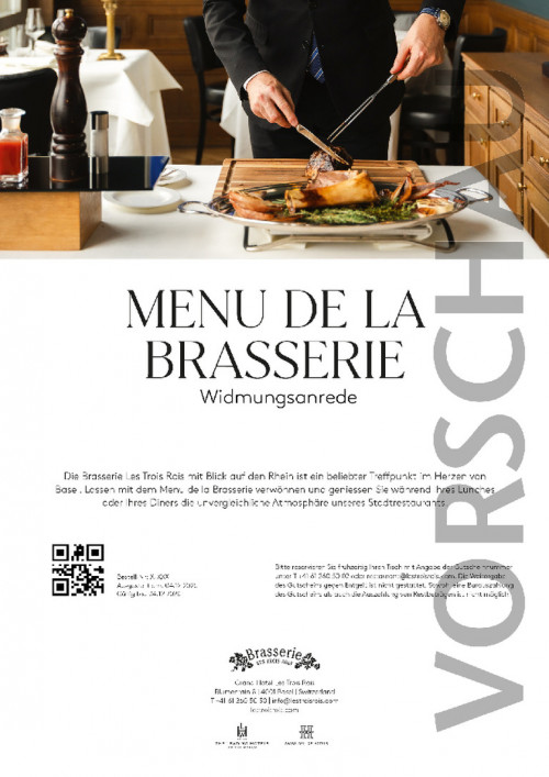 In der beliebten Brasserie Les Trois Rois servieren wir das exklusive Menu de la Brasserie mit marktfrischen Schweizer und französischen Brasserie-Spezialitäten, die vom reichen Terroir künden. Verschenken Sie einen Lunch oder ein Diner in unserem beliebten Stadtrestaurant – intensive Gaumenfreuden und Rheinblick inklusive.